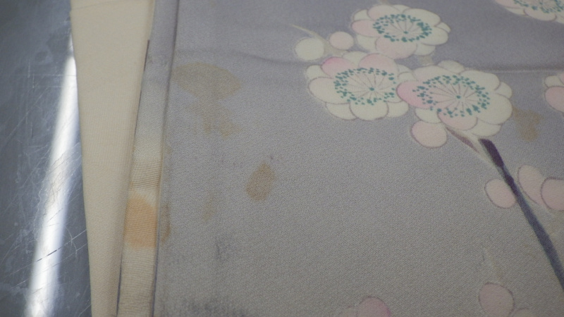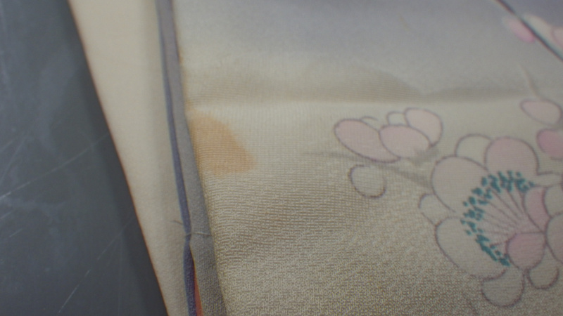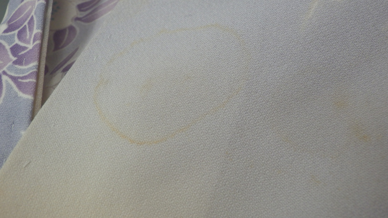 きものを広げていくとけっこうな黄ばみが出てきます、