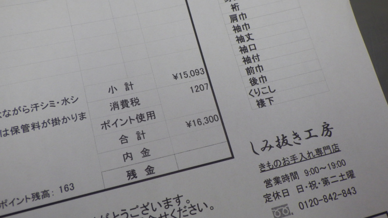 この度はしみ抜き工房をご利用いただき誠にありがとうございました。