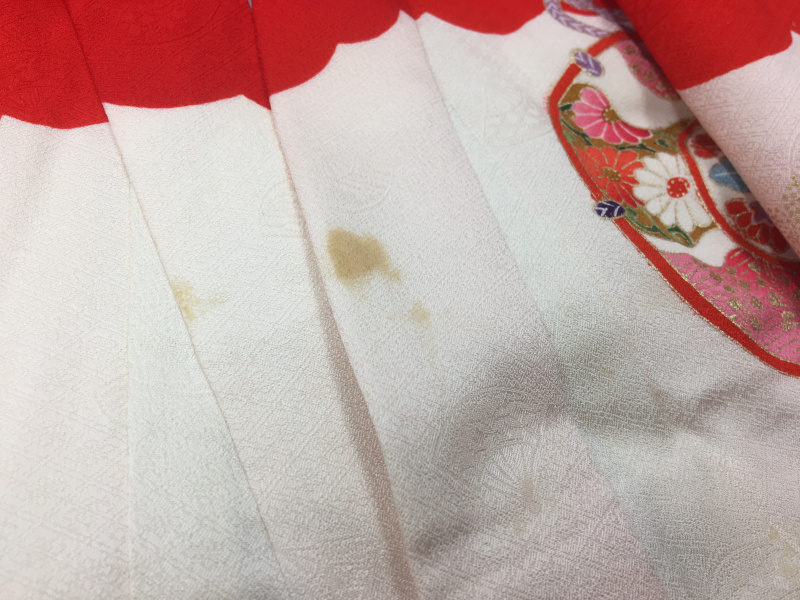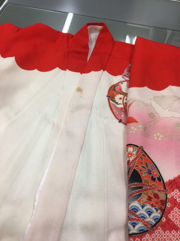 本日のお客様は、お祝着です! 衿元にでっかい黄ばみが有る為どうにもこうにも着られない。