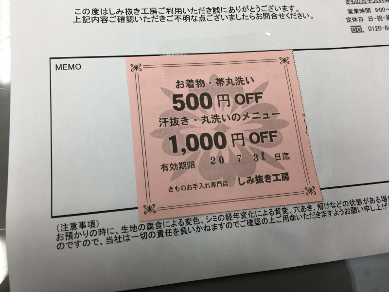 クリーニングをご利用いただいたお客様には、割引券をお渡ししています(^^♪