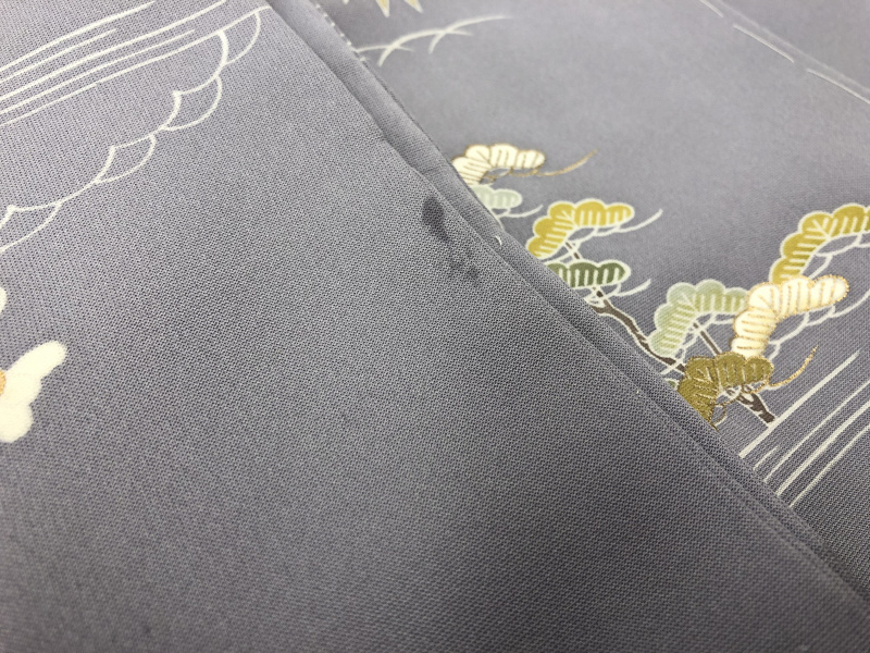 今回お手入れにお持ち頂いたキモノは着用汚れ、その他シミが有りましたので生洗い・しみ抜き・汗抜きにてお預かり致しました