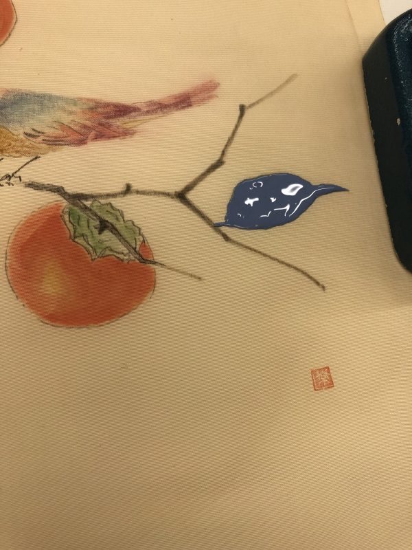 柄部分を伏せて、しみ抜き漂白をやってみます! ※先ずは葉っぱを伏せてみる(/・ω・)/