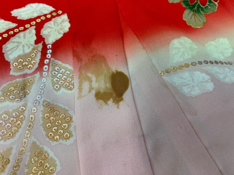 無理にシミを取ろうとすると生地が破損することもあるので今回は柄を書き足して隠すことに( `ー´)ノ