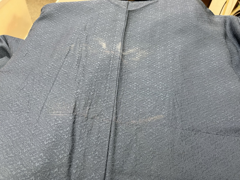 今回は全体の生洗いと、衿の変色、背中のスレ色抜けなど
